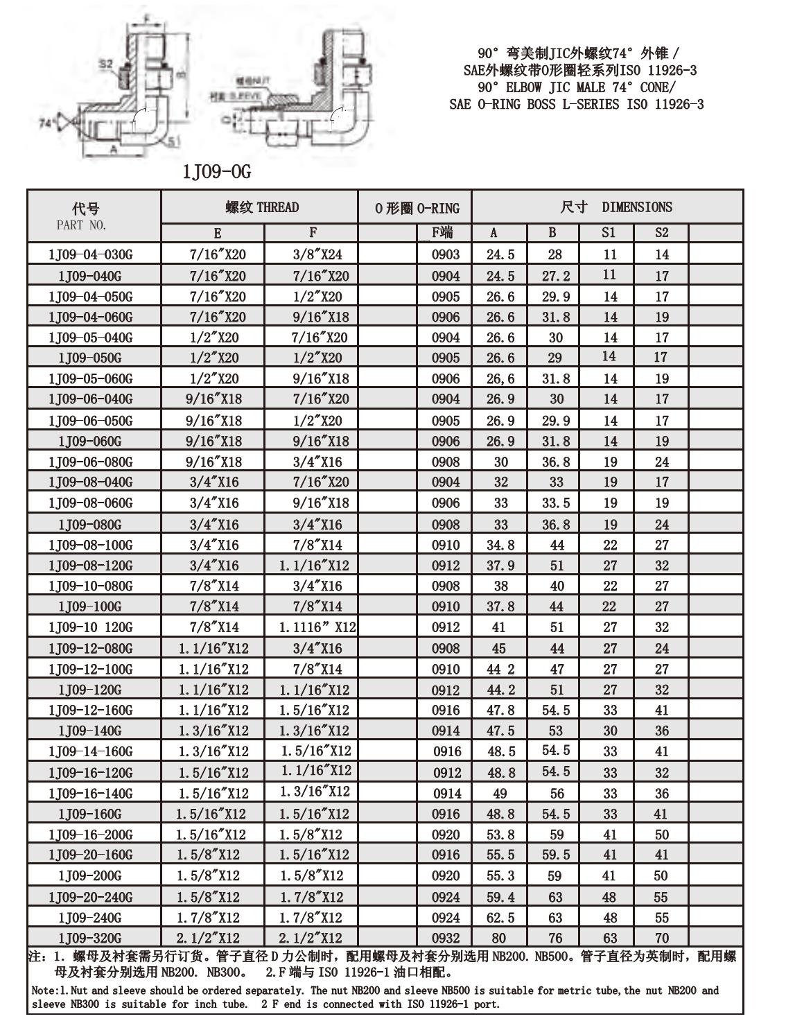 1J09-040G,1J09-060G,1J09-080G,1J09-100G,1J09-120G,1J09-160G,1J09-200G,1J09-240G,1J09-320G,美制螺紋74°錐面接