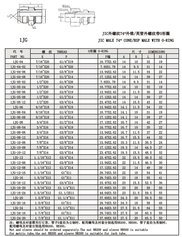 型號(hào): 1JG-04,1JG-06,1JG-08,1JG-10,1JG-12,1JG-16,1JG-20,1JG-24,