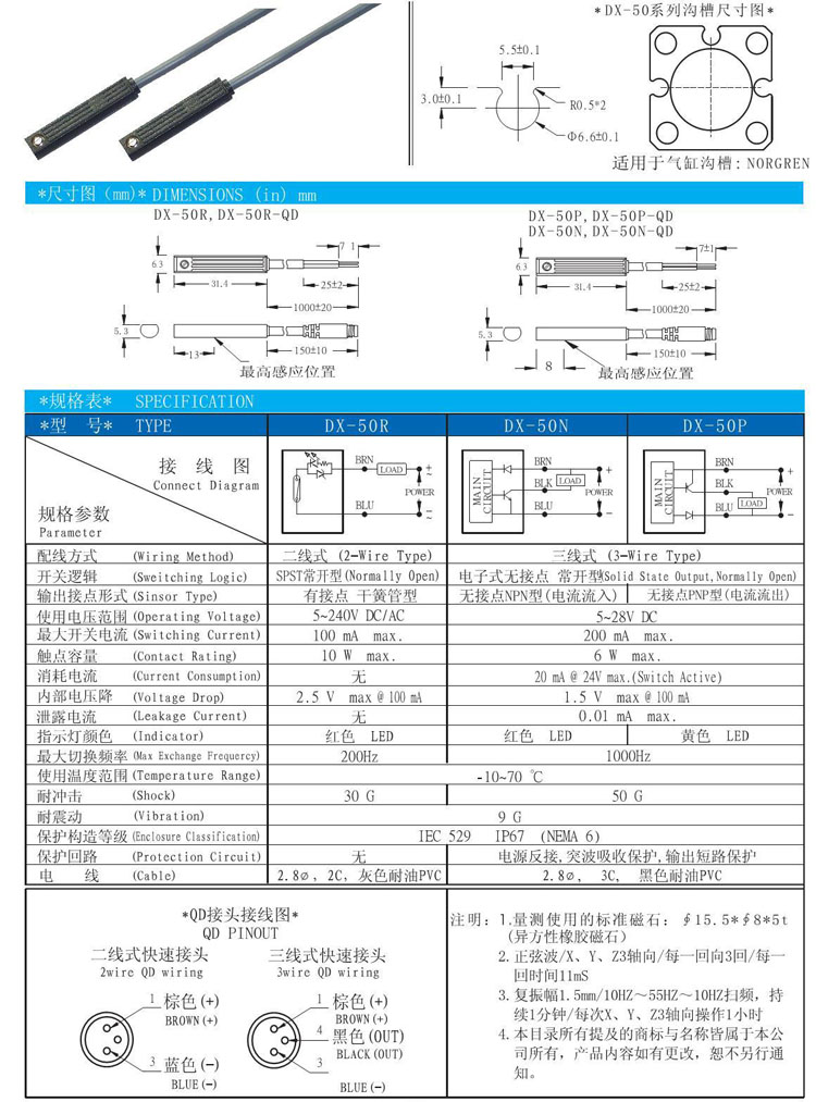 詳細信息 DX-50R,DX-50N,DX-50P,磁性開關(guān)