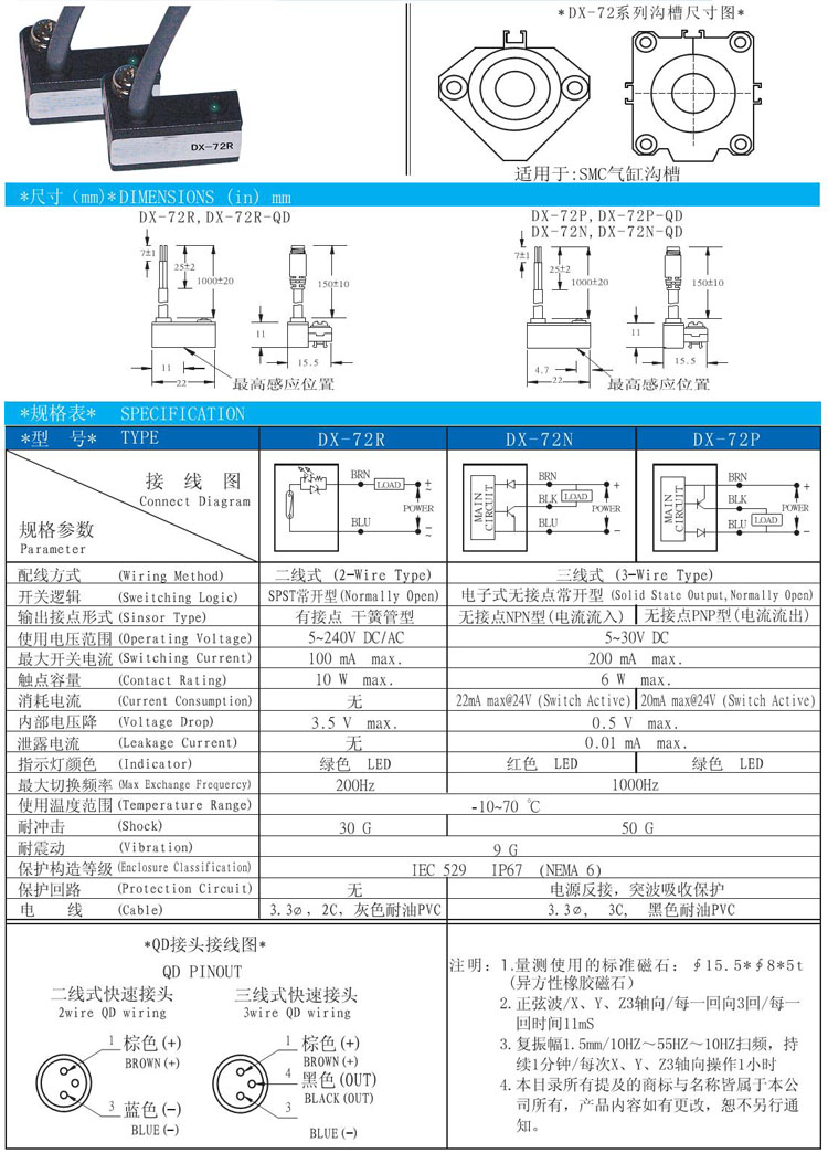詳細(xì)信息 DX-72R,DX-72N,DX-72P,磁性開關(guān)