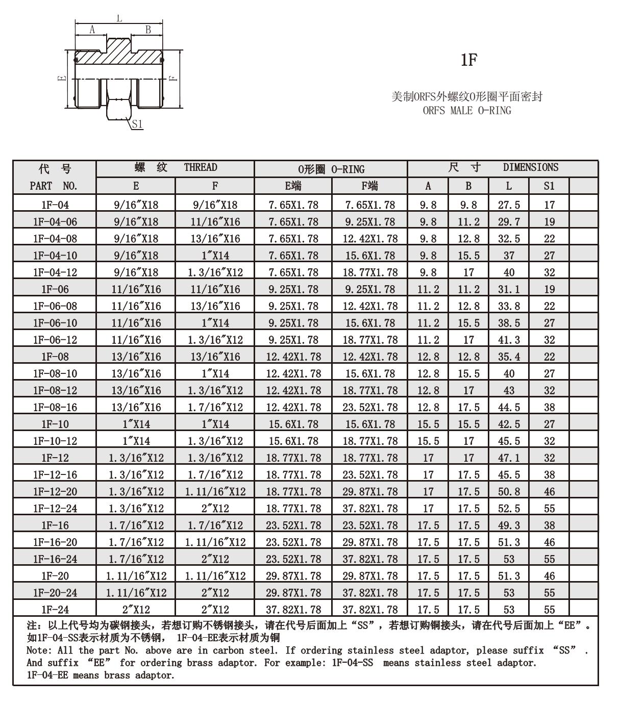 1F-04,1F-06,1F-08,1F-10,1F-12,1F-16,1F-20,1F-24,1F-04-06,平面密封接頭