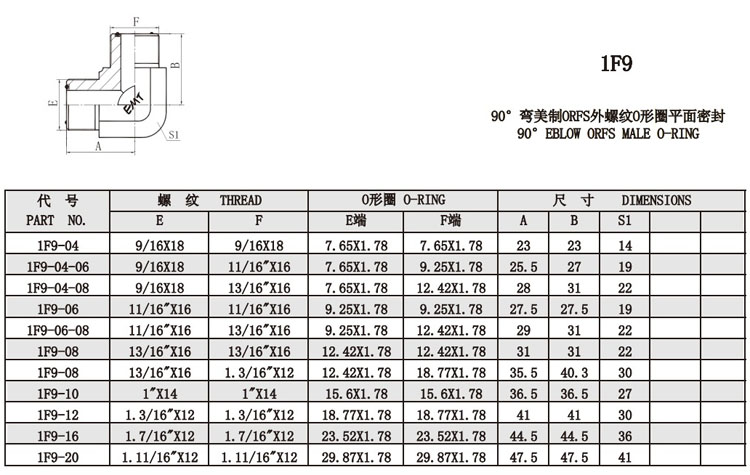 1F9-04,1F9-06,1F9-08,1F9-10,1F9-12,1F9-16,1F9-20,1F9-04-06,1F9-04-08,1F9-06-08,平面密封接頭