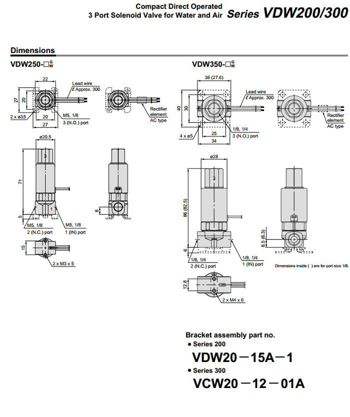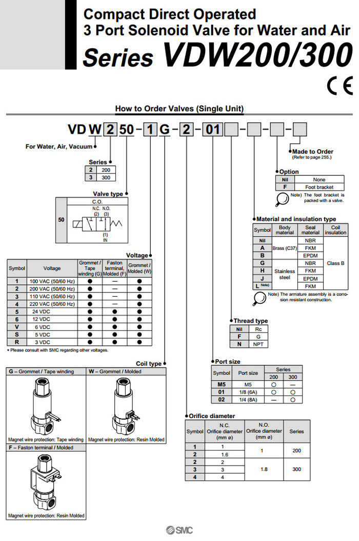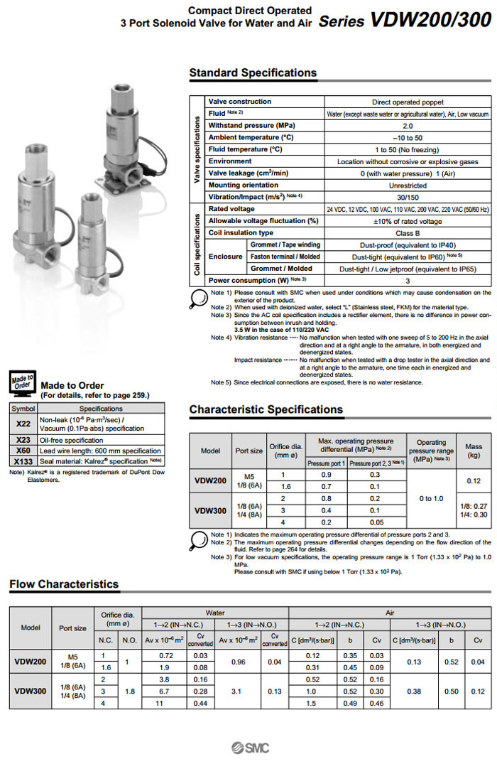 VDW250-1G,VDW350-1G,VDW250-5F,VDW250-6F,VDW250-1W,VDW350-5F,VDW350-6F,VDW350-1W,SMC直動式3通電磁閥