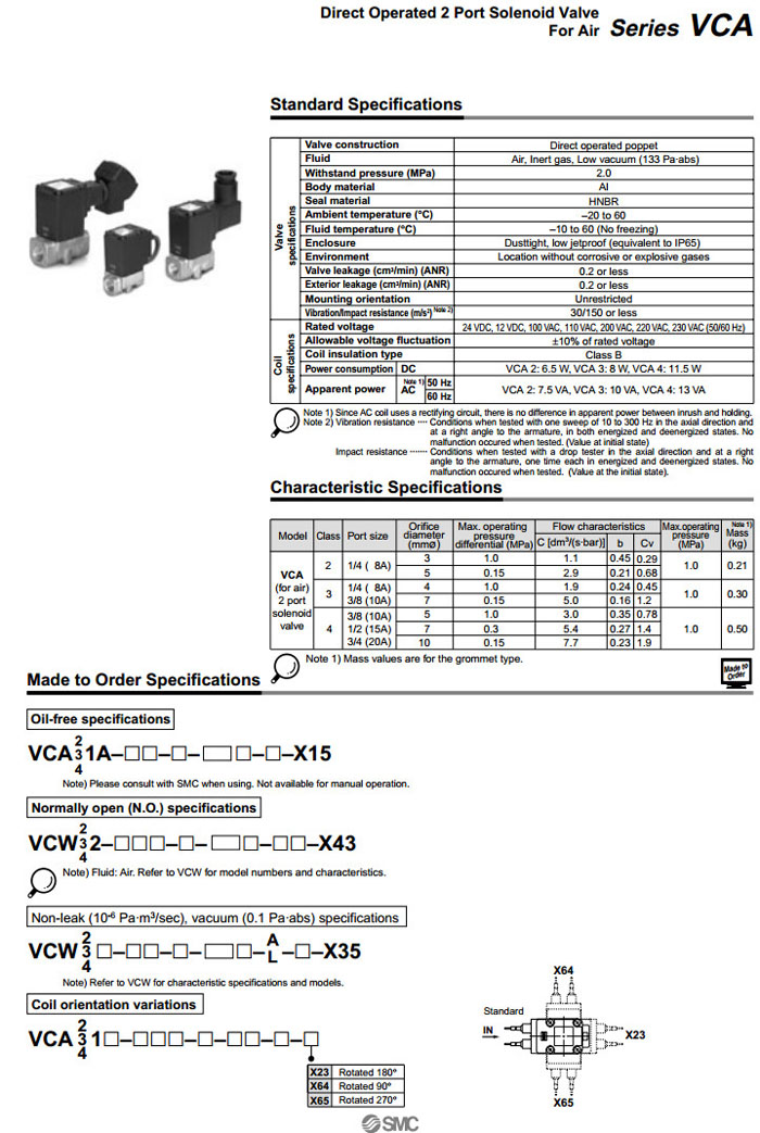 VCA21-1G,VCA21-1C,VCA21-1T,VCA31-1G,VCA31-1C,VCA31-1T,VCA41-1G,VCA41-1C,VCA41-1T,SMC直動(dòng)式2通電磁閥