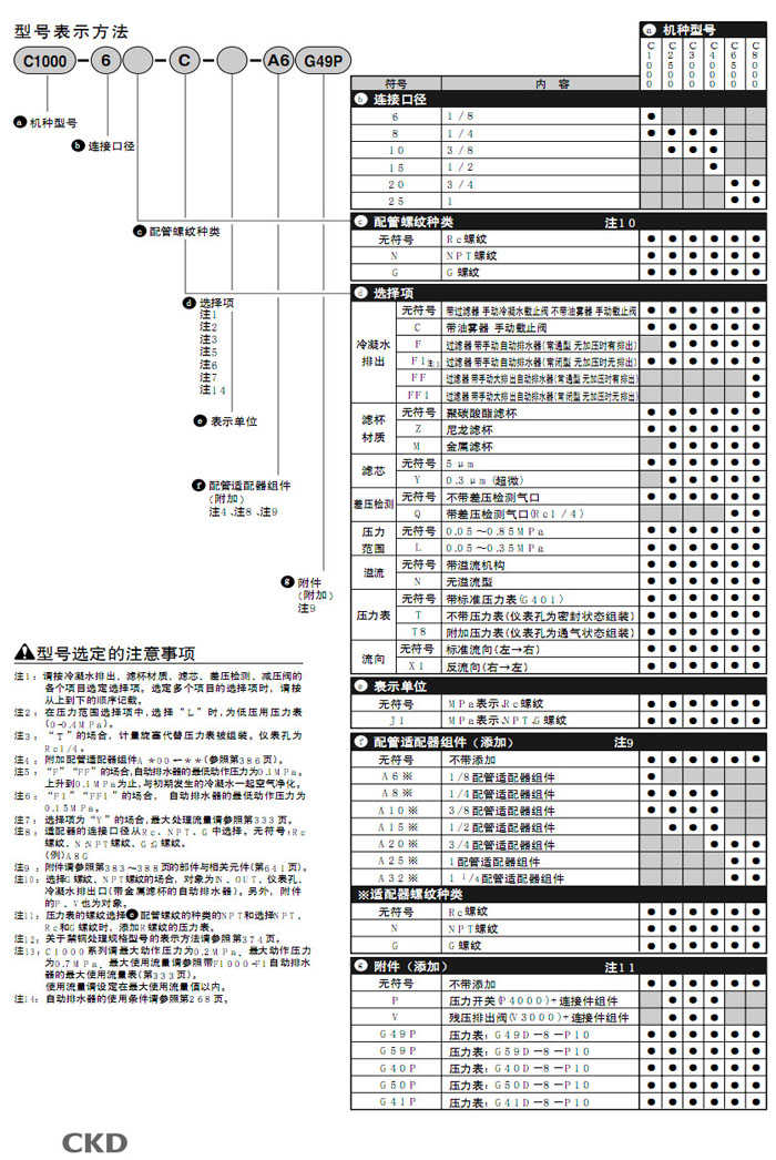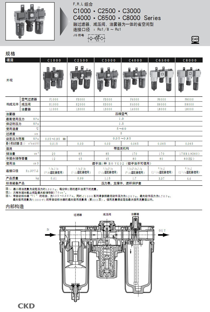 C1000-6,C2500-10,C3000-8,C3000-10,C4000-8,C4000-10,C4000-15,C6500-20,C6500-25,C8000-20,C8000-25,CKD三聯(lián)件