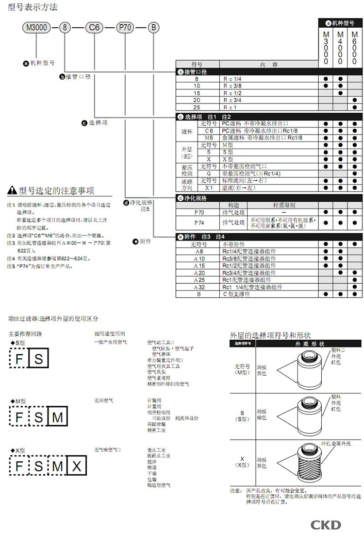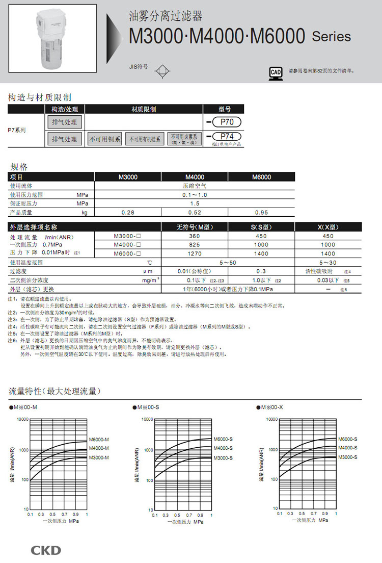 M3000-8,M3000-10,M4000-8,M4000-10,M4000-15,M6000-20,M6000-25,CKD油霧分離過濾器