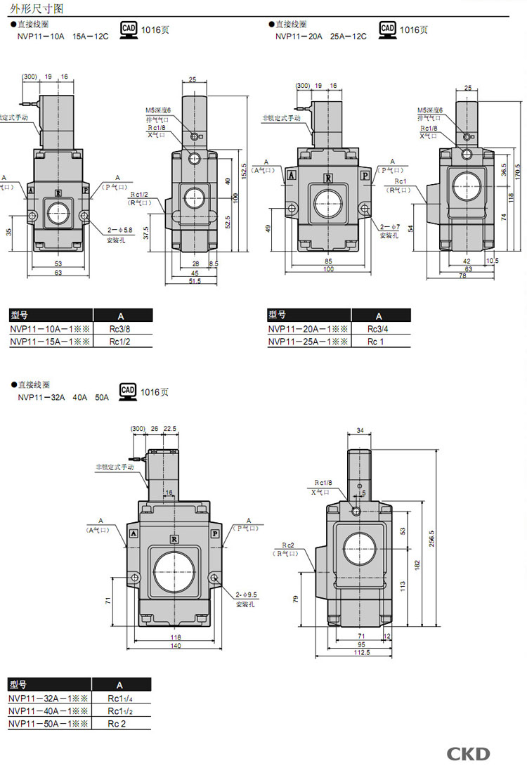 NVP11-10A,NVP11-15A,NVP11-20A,NVP11-25A,NVP11-32A,NVP11-40A,NVP11-50A,CKD先導(dǎo)式3通閥