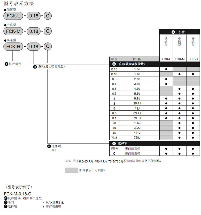 詳細信息 FCK-L-0.15,FCK-L-0.3,FCK-L-0.4,FCK-L-1,FCK-L-3,FCK-L-5,FCK-L-6.5,FCK-L-8.1,CKD緩沖器
