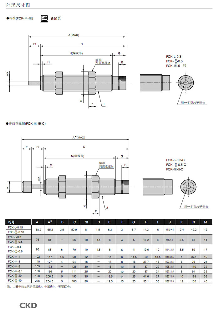 FCK-L-0.15,FCK-L-0.3,FCK-L-0.4,FCK-L-1,FCK-L-3,FCK-L-5,FCK-L-6.5,FCK-L-8.1,CKD緩沖器