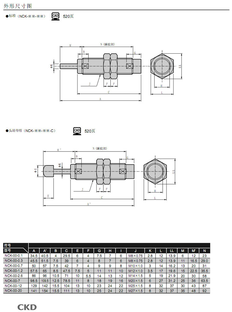 NCK-00-0.1,NCK-00-0.3,NCK-00-0.7,NCK-00-1.2,NCK-00-2.6,NCK-00-7,NCK-00-12,NCK-00-20,CKD緩沖器