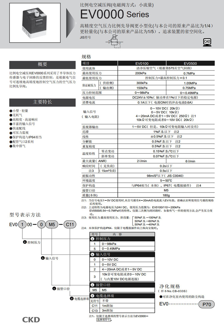 詳細(xì)信息 EV0100-0M5,EV0100-1M5,EV0100-2M5,EV0100-3M5,EV0500-0M5,EV0500-1M5,EV0500-2M5,EV0500-3M5,CKD比例電控減壓閥