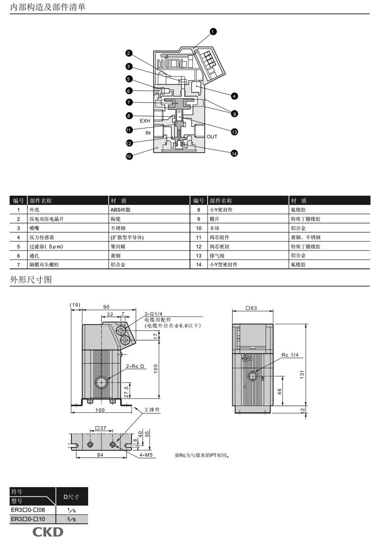 詳細(xì)信息 ER310-0-08,ER350-0-08,ER380-0-08,ER310-1-08,ER350-1-08,ER380-1-08,CKD比例電控減壓閥