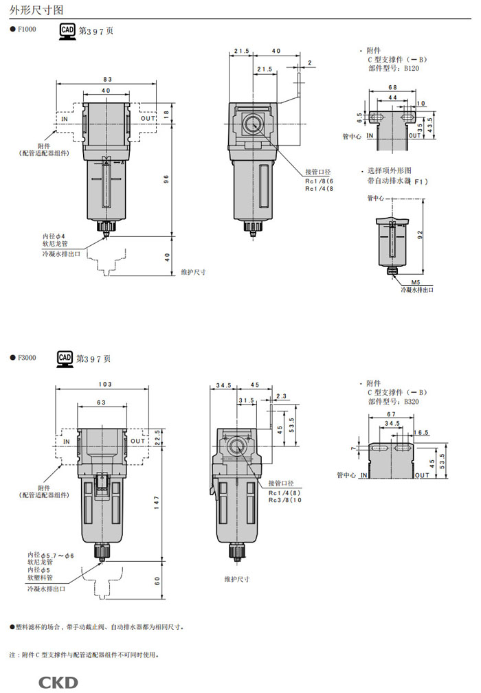 F1000-6,F1000-8,F3000-8,F3000-10,F4000-8,F4000-15,F6000-20,F6000-25,F8000-20,F8000-25,F4000-10,CKD空氣過濾器