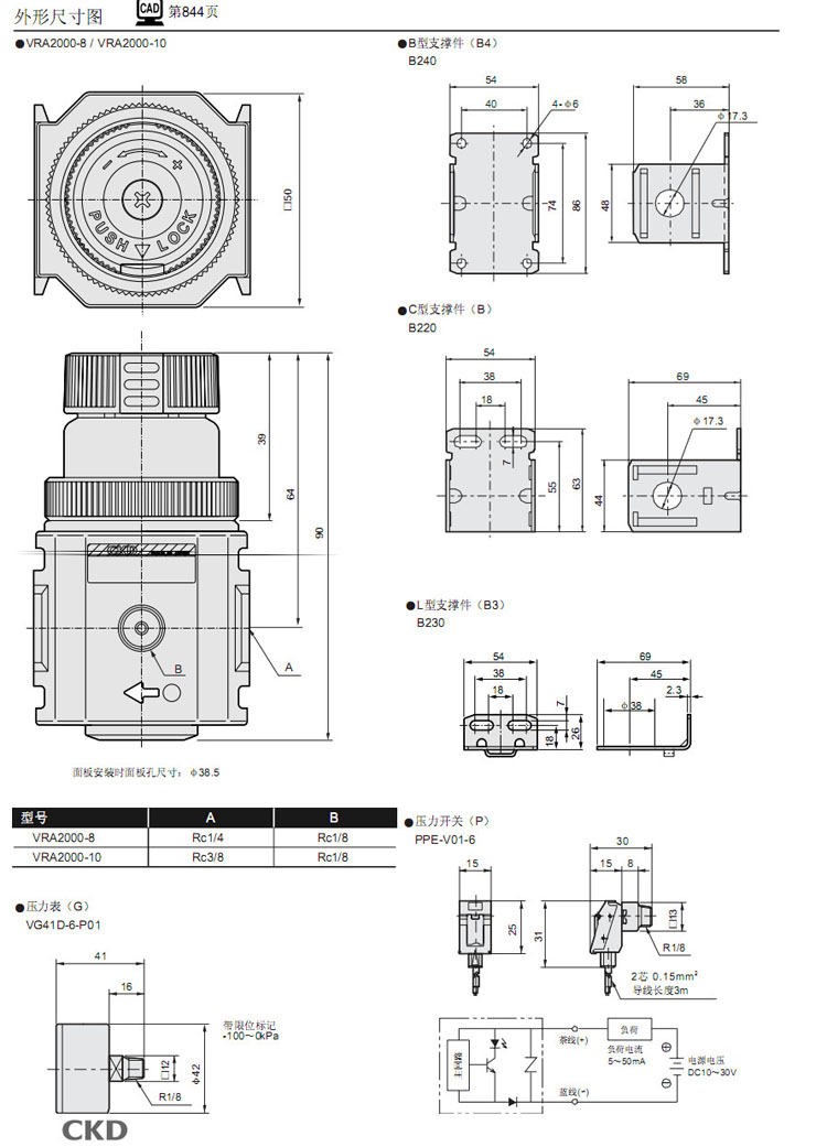 詳細(xì)信息 VRA2000-8,VRA2000-10,VRA2000-8G,VRA2000-10G,VRA2000-8N,VRA2000-10N,CKD真空減壓閥