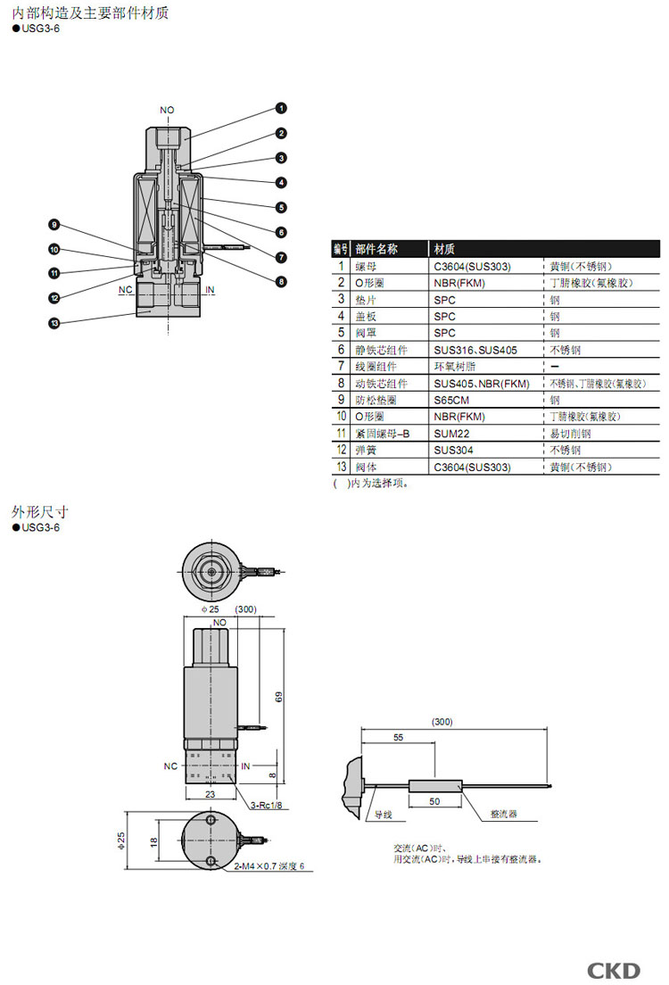 詳細(xì)信息 USG3-6-1,USG3-6-2,CKD直動(dòng)式3通電磁閥