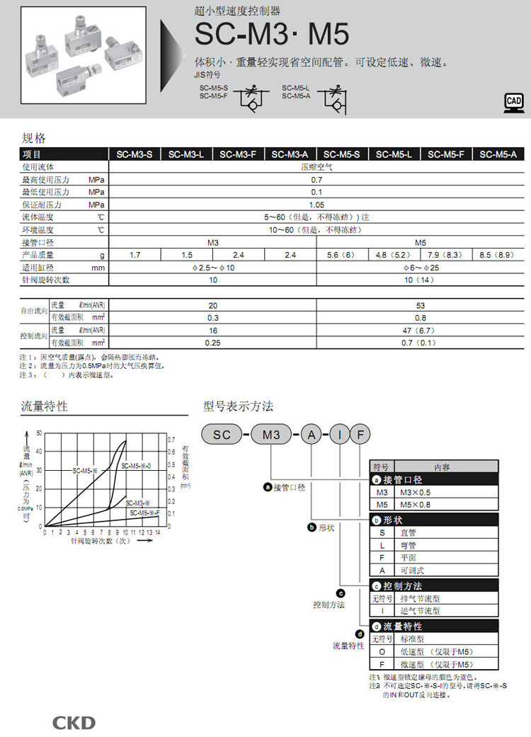 詳細(xì)信息 SC-M3-S,SC-M3-L,SC-M3-F,SC-M3-A,SC-M5-S,SC-M5-L,SC-M5-F,SC-M5-A,CKD速度控制器