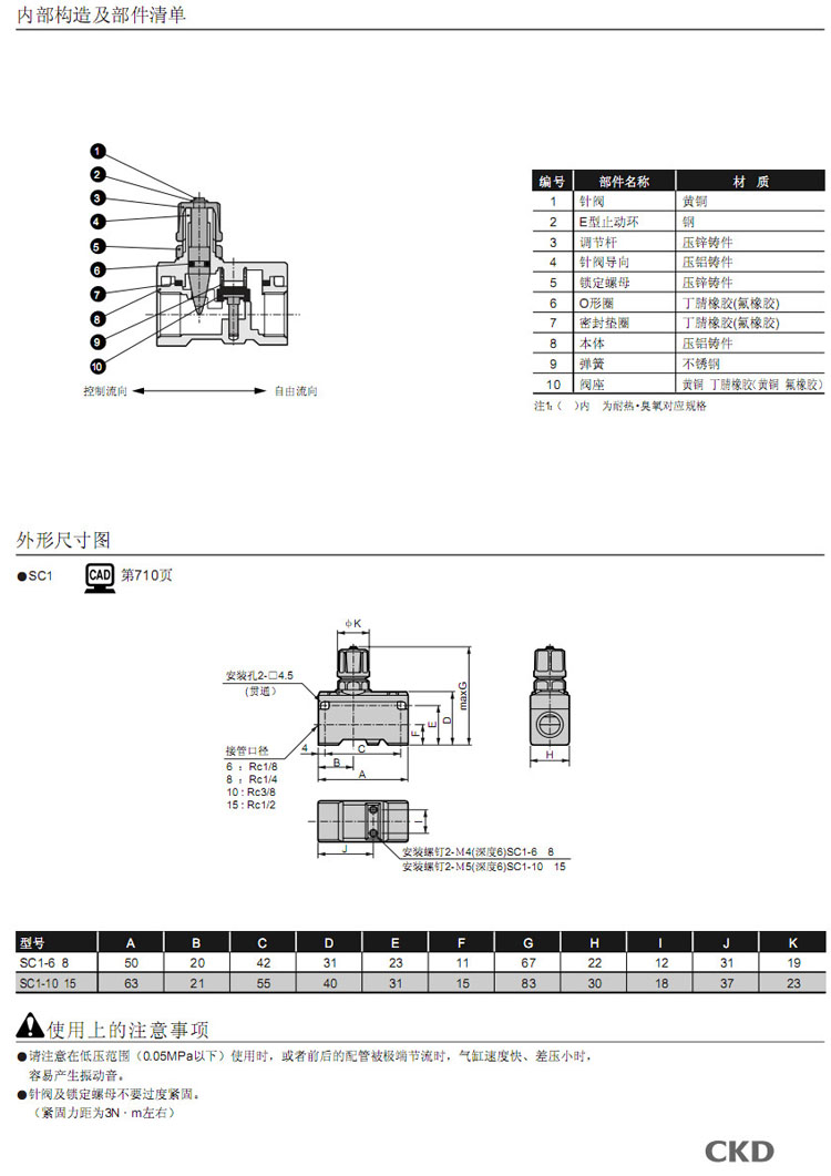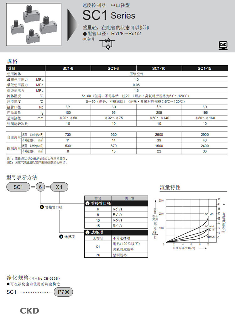 詳細(xì)信息 SC1-6,SC1-8,SC1-10,SC1-15,CKD速度控制器