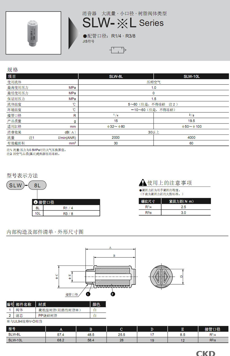 SLW-8L,SLW-10L,CKD消音器