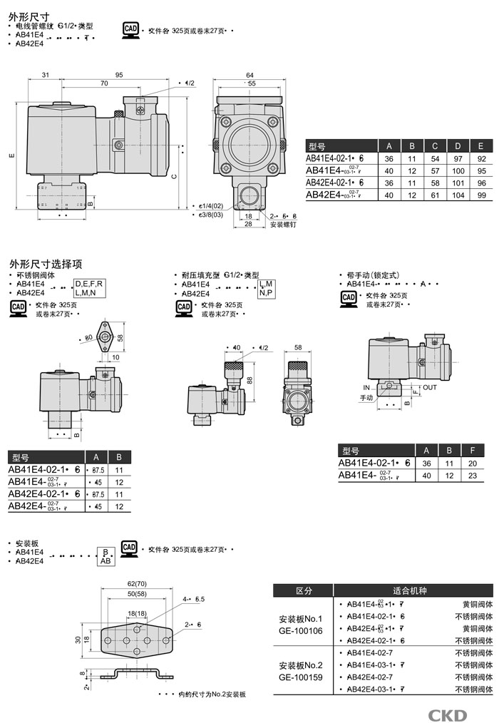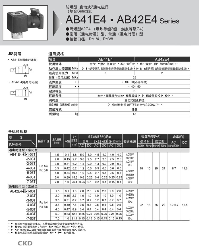 AB41E4-02-1-03T,AB41E4-03-1-03T,AB42E4-02-1-03T,AB42E4-03-1-03T,CKD直動(dòng)式2通電磁閥