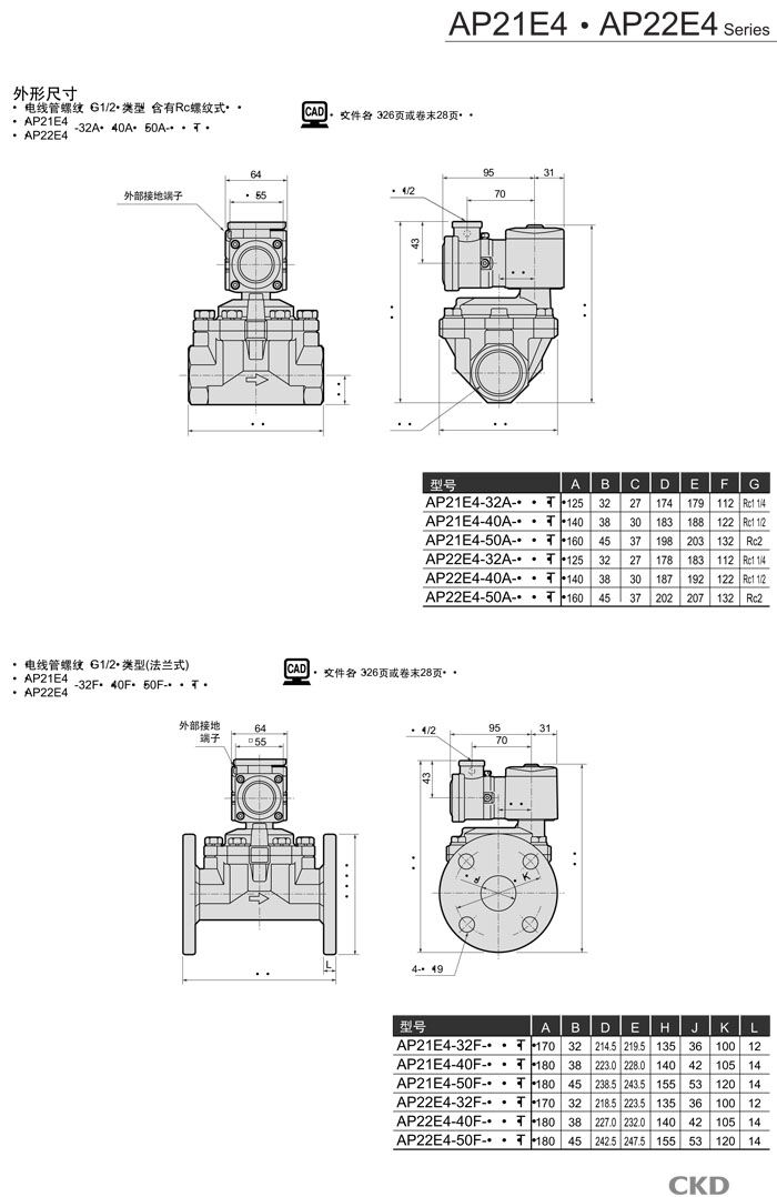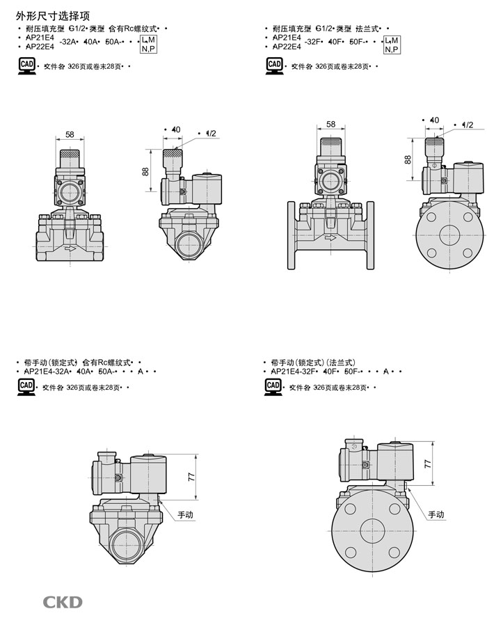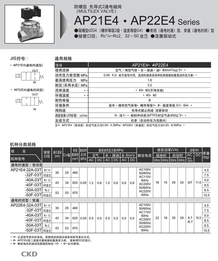 AP21E4-32,AP21E4-40,AP21E4-50,AP22E4-32,AP22E4-40,AP22E4-50,CKD先導(dǎo)式2通電磁閥