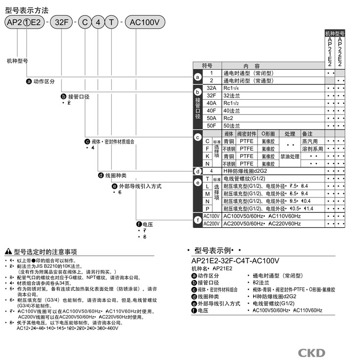 AP21E2-32,AP21E2-40,AP21E2-50,AP22E2-32,AP22E2-40,AP22E2-50,AP21E2-32A-K4N,CKD先導(dǎo)式2通電磁閥