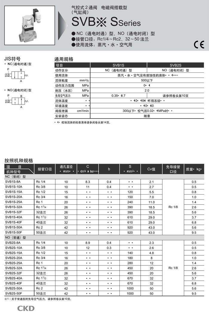 SVB2S-25A,SVB2S-32A,SVB2S-32F,SVB2S-40A,SVB2S-40F,SVB2S-50A,SVB2S-50F,CKD氣控式2通閥