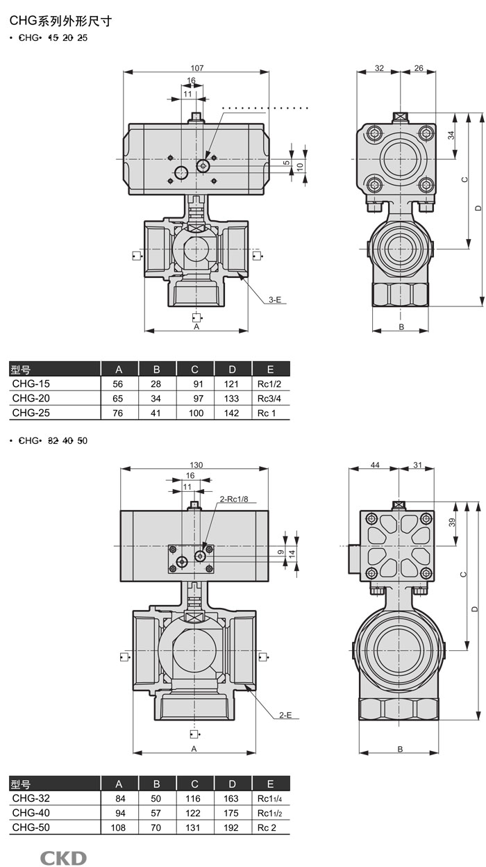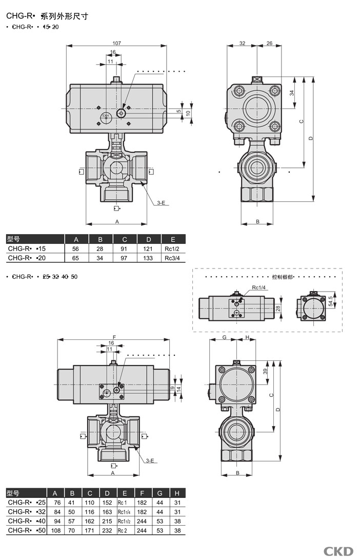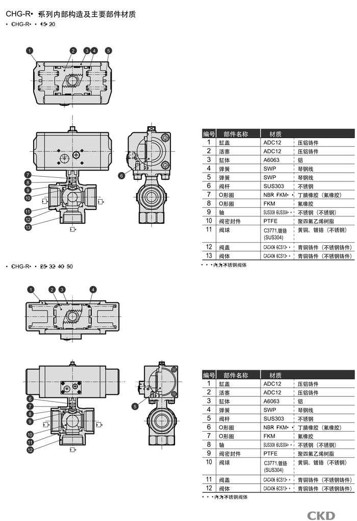 CHG-R1-15-E,CHG-R1-20-E,CHG-R1-25-E,CHG-R1-32-E,CHG-R1-40-E,CHG-R1-50-E,CKD氣動式球閥3通閥