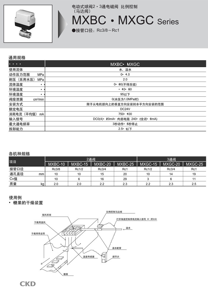詳細(xì)信息 MXBC-10,MXBC-15,MXBC-20,MXBC-25,MXGC-15,MXGC-20,MXGC-25,MXBC-10-O-3,CKD電動(dòng)式球閥2·3通電磁閥
