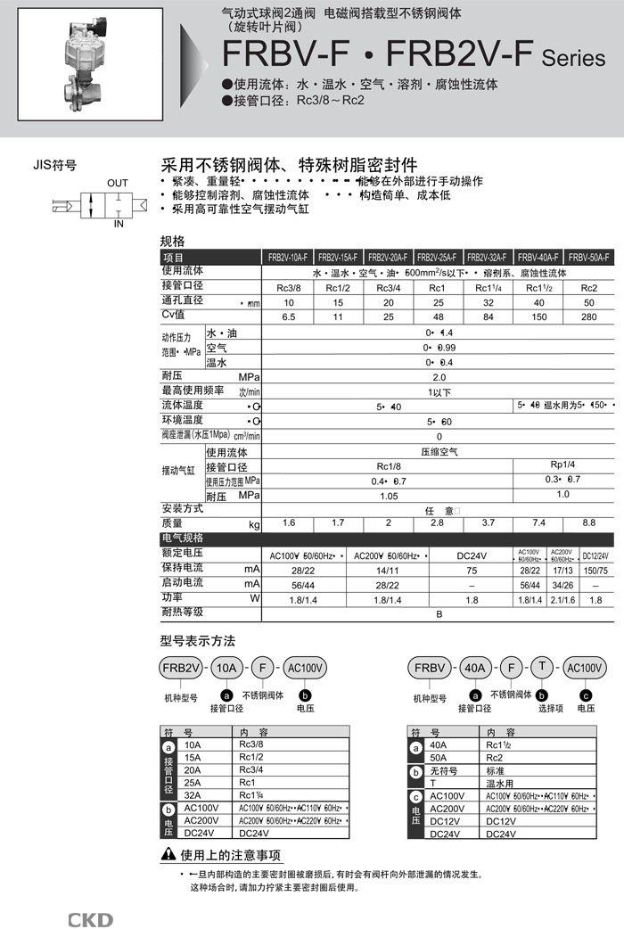 FRB2V-10A-F,FRB2V-15A-F,FRB2V-20A-F,FRB2V-25A-F,FRB2V-32A-F,FRBV-40A-F,FRBV-50A-F,CKD氣動(dòng)式球閥2通閥