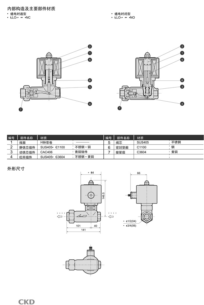 LLO-04-25,LLO-06-25,LLO-04-210,LLO-06-210,LLO-04-221,LLO-06-221,CKD直動(dòng)式2通電磁閥