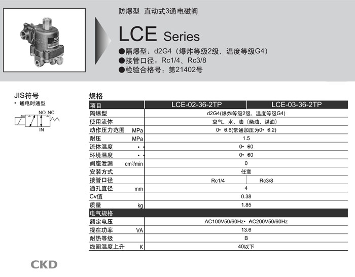 詳細(xì)信息 LCE-02-36-2TP,LCE-03-36-2TP,CKD直動式3通電磁閥