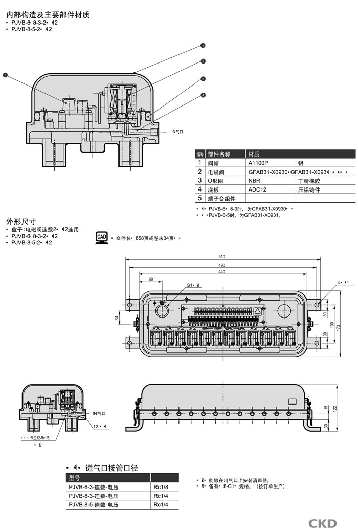 PJVB-6-3,PJVB-6-5,PJVB-8-3,PJVB-8-5,CKD多連式電磁閥