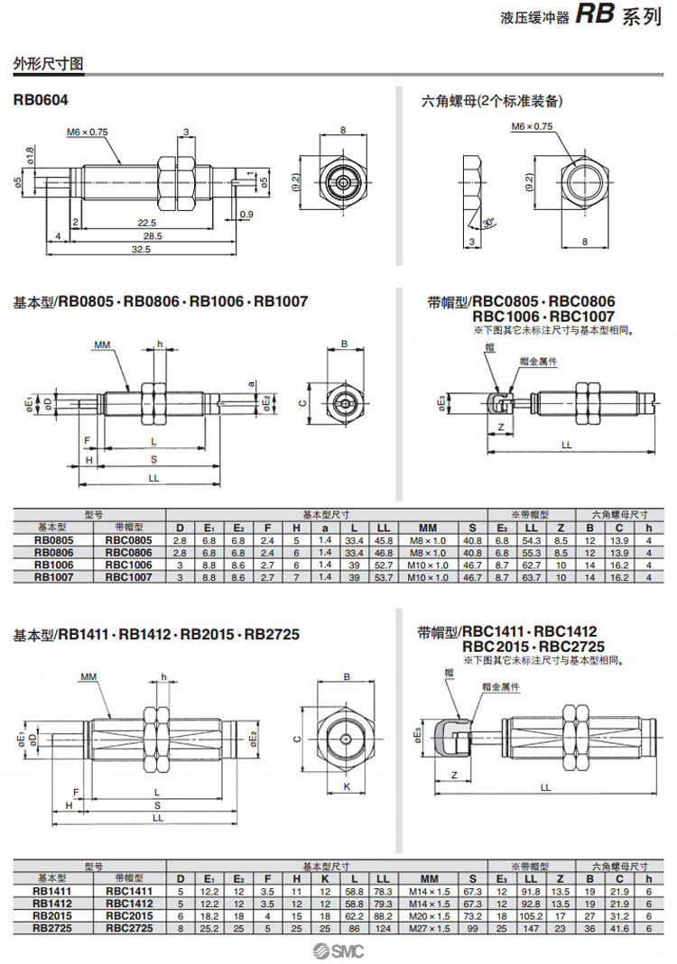 詳細(xì)信息 RBC0805,RBC0806,RBC1006,RBC1007,RBC1411,RBC1412,RBC2015,RBC2725,SMC液壓緩沖器