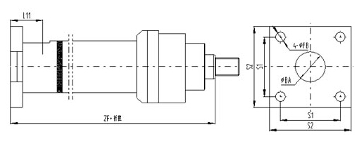 J –安裝方式:J=基本型;F1=頭部長方法蘭(用于缸徑D125);F2=尾部長方法蘭(用于缸徑D125);F3=頭部圓法蘭;F4=尾部圓法蘭;F5=頭部方法蘭;F6=尾部方法蘭;E1=尾部單耳環(huán)帶關(guān)節(jié)軸承;E2=尾部單耳環(huán)帶軸套;Z1=頭部軸銷;Z2=中間軸銷;Z3=尾部軸銷;J1=軸向腳架;J2=徑向腳架