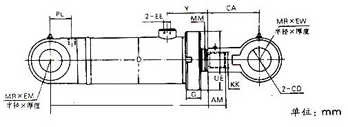 3.最小行程不包括缸頭、缸筒連接方式為鉸軸及中部法蘭型