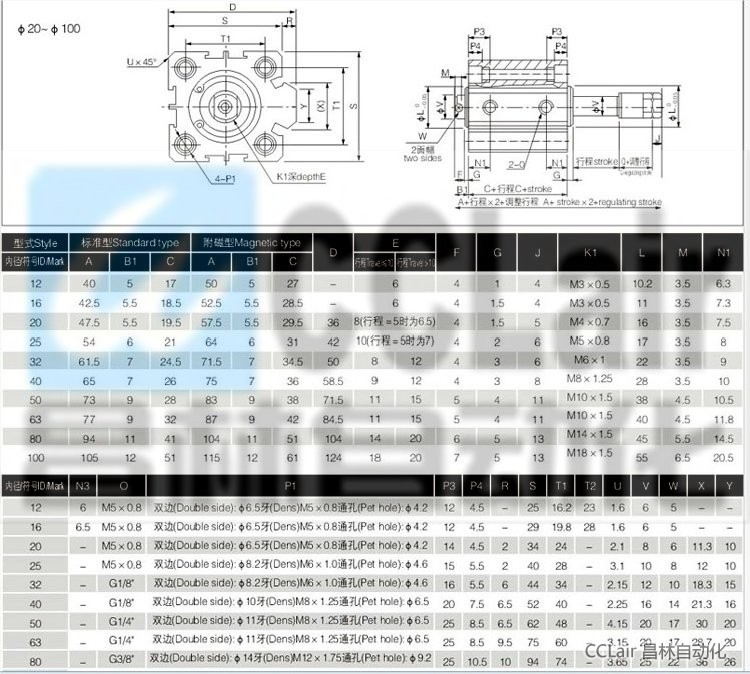 SDAJ32*60,SDAJ32*65,SDAJ32*70,SDAJ32*75,SDAJ32*80,SDAJ32*85,SDAJ32*90,行程可調(diào)超薄型氣缸