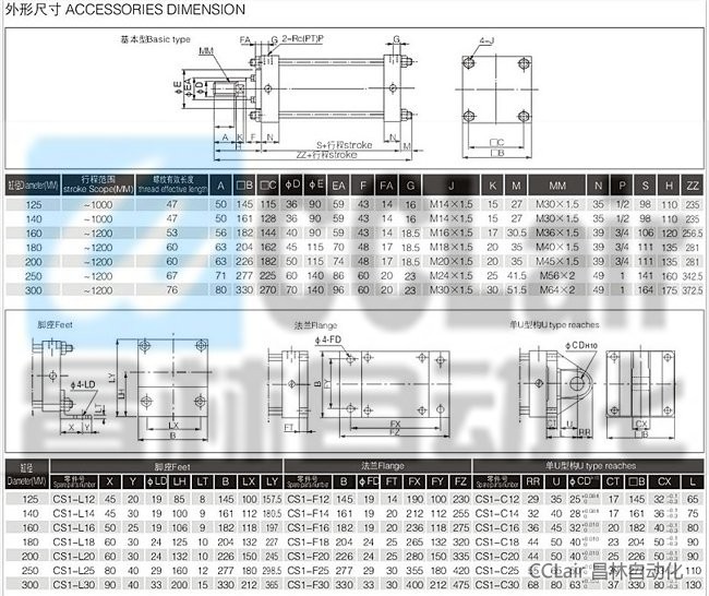CS1BN180-500,CS1BN180-600,CS1BN180-700,CS1BN180-800,CS1BN180-900,標(biāo)準(zhǔn)型氣缸