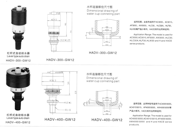 HADV-200-G10,HADV-300-GW12,HADV-400-GW12,杠桿式自動排水器