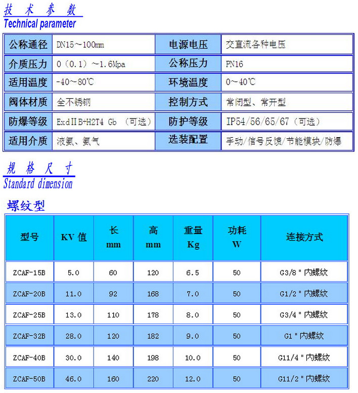 詳細(xì)信息 ZCAF-15B,ZCAF-20B,ZCAF-25BF,ZCAF-32BF,ZCAF-40BF,氨用不銹鋼電磁閥