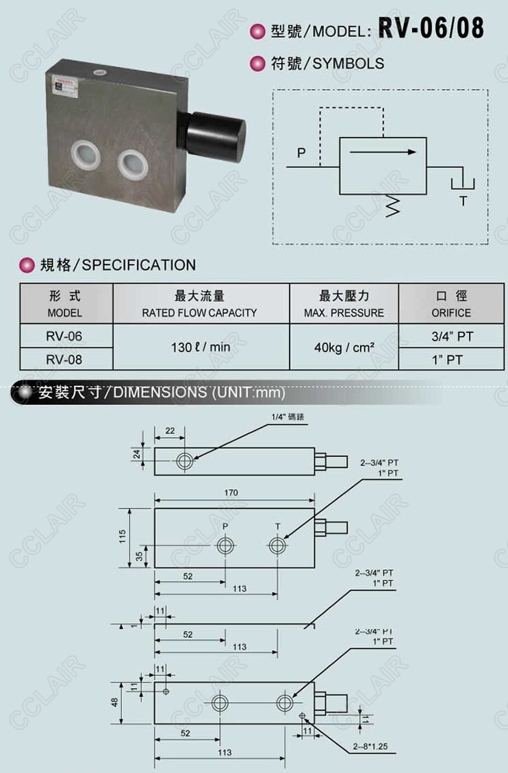 RV-06,RV-08,直動式溢流閥FONGTIEN