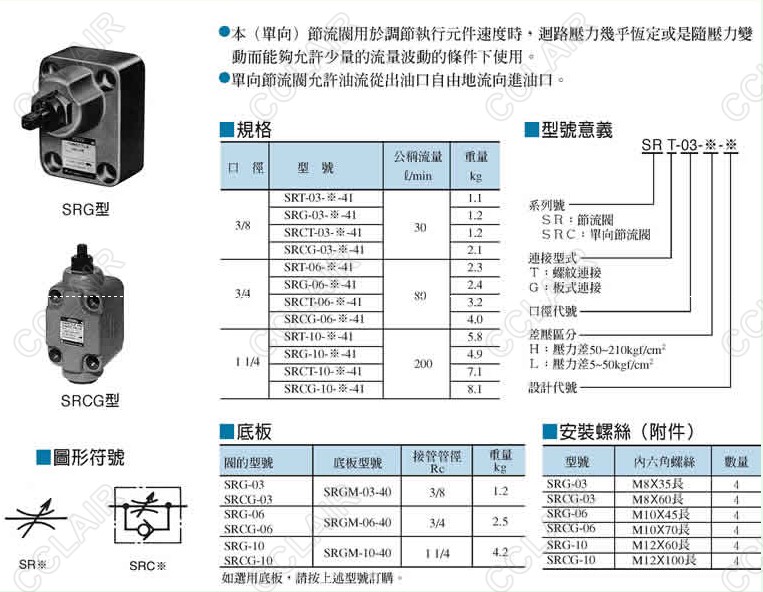 SRT-03-H-41,SRG-03-H-41,SRG-06-L-41,SRCT-06-H-41,SRCG-10-L-41,節(jié)流閥YUKEN