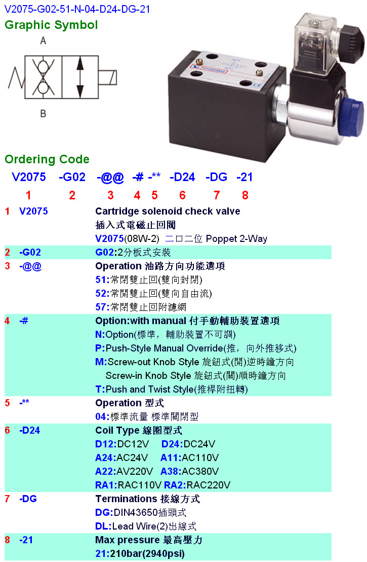 V2075-G02-51-N-04-D24-DG-21,V2075-G02-51-N-04,V2075-G02-52-N-04,V2075-G02-57-N-04,HYDROMAX插入式電磁止回閥