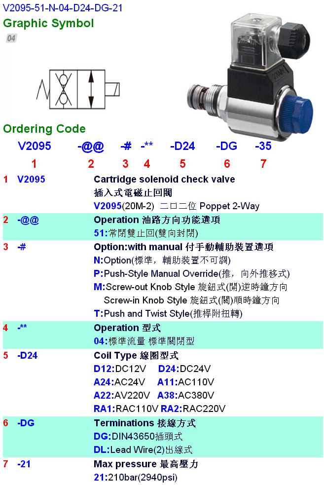 V2095-51-N-04-D24-DG-21,V2095-51-P-04,V2095-51-M-04,V2095-51-T-04,HYDROMAX插入式電磁止回閥