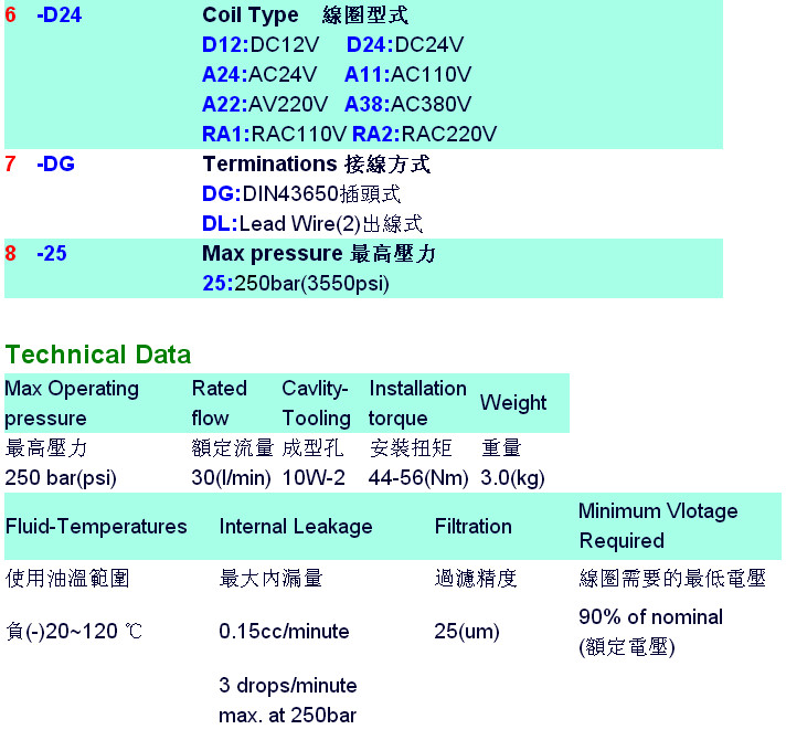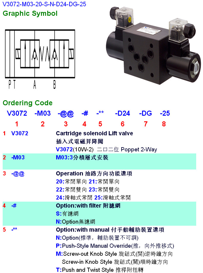 V3072-M03-21,V3072-M03-22,V3072-M03-23,V3072-M03-24,V3072-M03-20-S-N-D24-DG-25,HYDROMAX插入式電磁升降閥