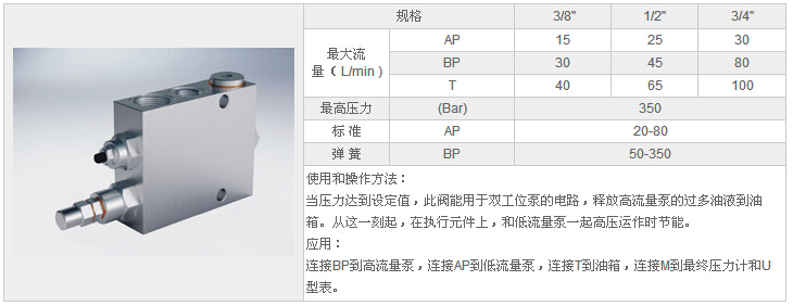 詳細(xì)信息 HYVABP 3/8",HYVABP 1/2",HYVABP 3/4",雙泵高低流量卸荷閥