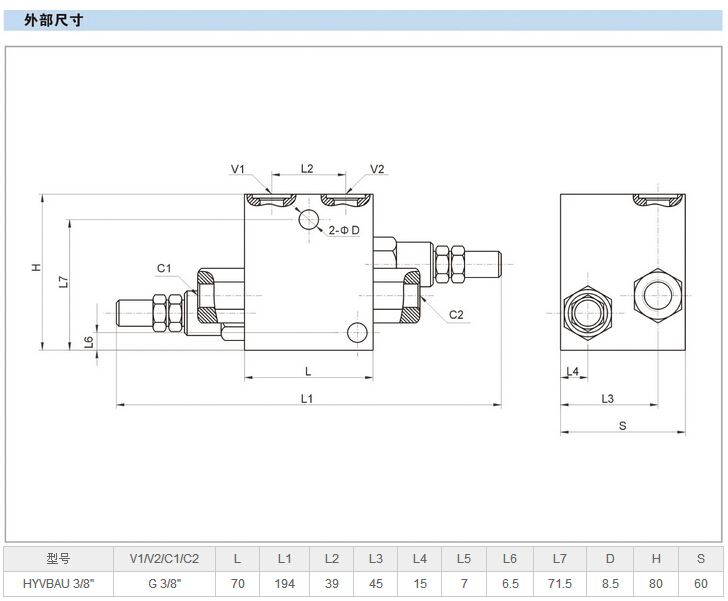 詳細(xì)信息 HYVBAU 3/8",雙向交叉溢流閥