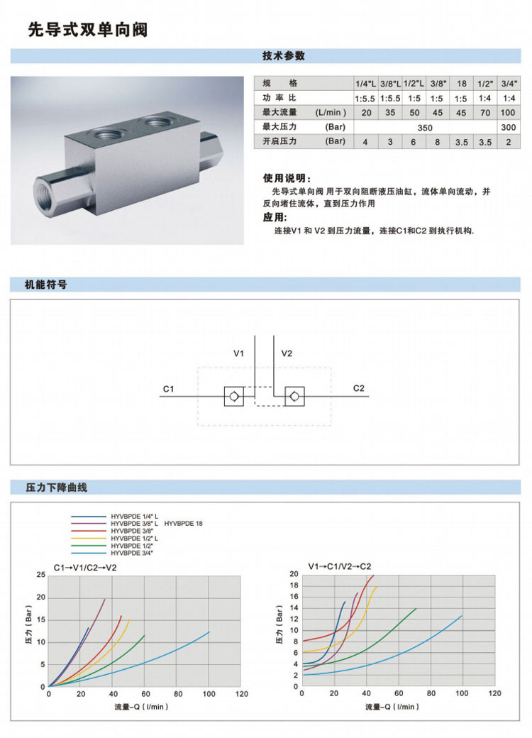 詳細信息 HYVBPDE 1/4" L,HYVBPDE 3/8" L,HYVBPDE 1/2" L,HYVBPDE 3/8",HYVBPDE 18,HYVBPDE 1/2",HYVBPDE 3/4",先導(dǎo)式雙單向閥