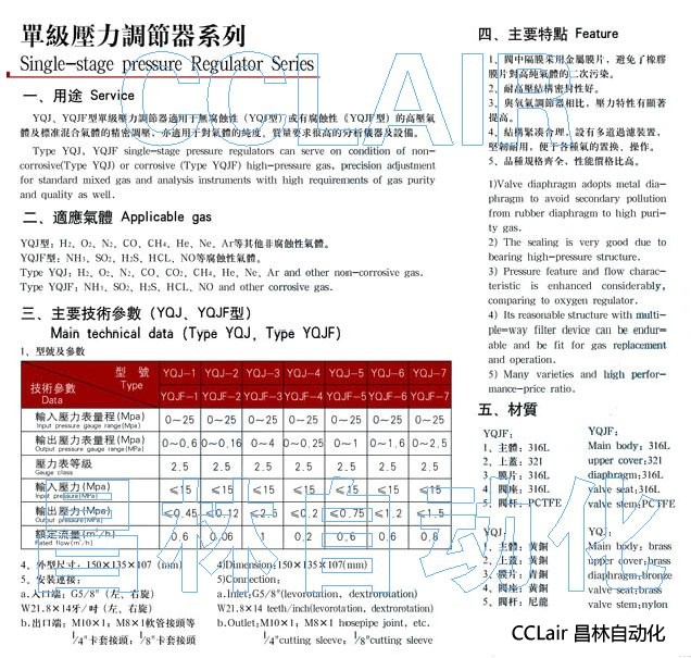 詳細(xì)信息 YQJ-1,YQJ-2,YQJ-3,YQJ-4,YQJ-5,不銹鋼單級(jí)壓力調(diào)節(jié)器