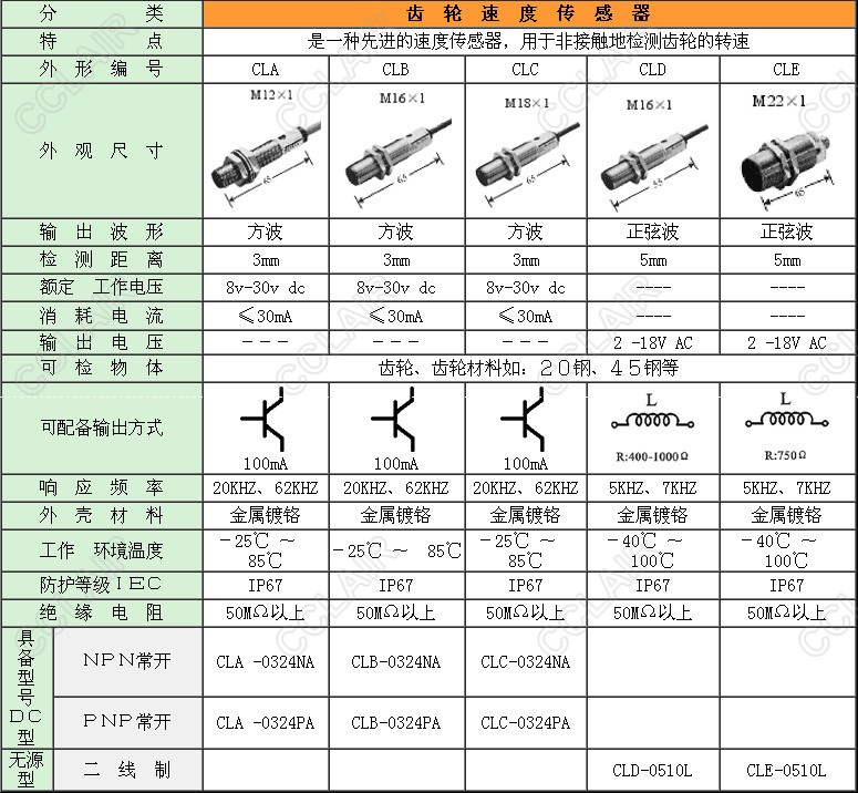 詳細(xì)信息 CLA-0324NA,CLB-0324NA,CLC-0324NA,CLA-0324PA,CLB-0324PA,CLC-0324PA,CLD-0510L,CLE-0510L,齒輪速度傳感器