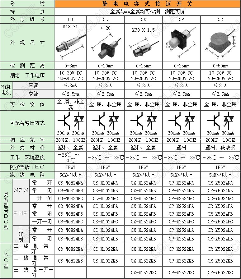 CB-M0824NA,CE-M1024NA,CX-M1524NA,CP-M2524NA,CR-M5024NA,CB-M0824NB,CE-M1024NB,CX-M1524NB,靜電電容式接近開關